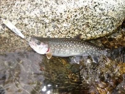 午前中は家事仕事があったので、15時頃、川入へ出かけました。集落の下で竿振り!!カゲロウが沢山飛んでいてジャバジャバとイワナが食らい付いていました、そこへルアーやプラグを振り入れると、ヒットする状況でした。