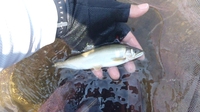 NABEさんに電話し呼寄せた( ^o)ρ┳┻┳°σ(o^ )こっちの瀬は追いが強いヨ!NABEさん瀬尻でポツポツ釣れ始まった。我輩はチャラ瀬に移動し掛ったりケラレたり、針を狐チラシに替えたりし形バラバラ4尾プラス。