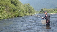 やっぱ遠いなぁ~!!会津の端から端へ只見川を逆走し南郷まで2時間半。7時、川を横目に竿が幾つか見え期待を膨らませ、遊魚券とオトリをチョイス!上流は大勢入っているとの事で下流域へ・・・これが凶だった!