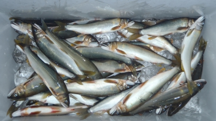 !!人が入った事で追い上げたか?5/6尾再びプチ入れ掛り!午前中はバッチリ背掛りだったのだが顔や腹掛りで舟内の物と交換する度に1/2尾逃がしていまった。必要な数以外はオトリ缶に入れて午後の釣りを行えば良かったのだが鮨詰で舟蓋も開けづらく手からも逃げる…終了時の数えでも舟に戻す際3尾逃がす始末で、何だかんだ10尾逃がしてしまった^_^;持ち帰り48尾(12~20cm)