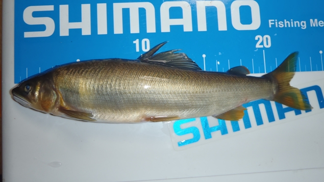 9時ごろから風が吹き始め釣り難く、竿休めしながら2尾釣り午前終了。腹減った…Jちゃんやっと帰って来た。下流でも2尾しか釣れなかったとのことだった。