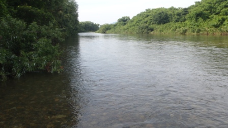 8時頃、パタッとチビ鮎も釣れなく成った。対岸先の砂利工場が「ジャラジャラ」と稼働した音の為か?そうこうしている内に下流には6人の釣師が…