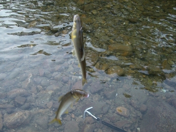 オトリが変わり、ポンポンと良い調子。あの無言の1時間は何だったのだろうか、針かオトリか?解禁日は交通事故で(>_<)掛かりもあったが、オトリに近寄って来ない状況でした。掛かる時は、いきなりガツンと背掛りばかりでした。