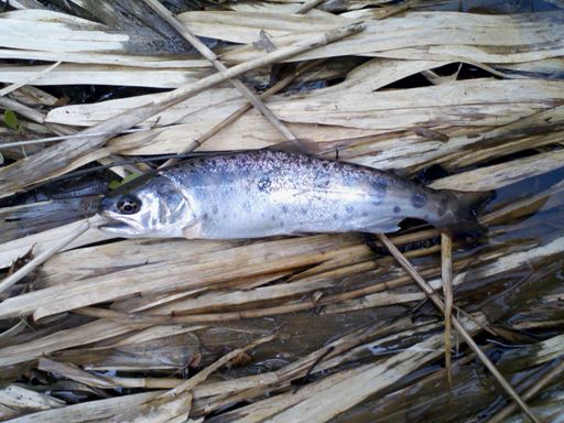 2度目にして、やっとこさ掛かってくれたのはちっちゃな(18cm)ヤマメでした(苦笑)でも銀化