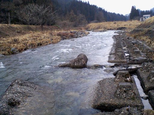 やはり先行者の足跡があり、200M間魚影を見ないまま竿振るのみ!ここを諦めて集落へ移動する事にした。