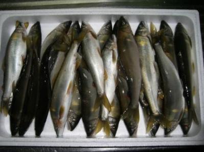 米沢周りで車を走らせた、荒川までの各河川はコーヒー牛乳で当然荒川も濁ってました。しかし、女川は濁りは入ってなかった。この分だと三面川は昨日の雨は影響無さそうだ!釣り券とオトリを入手早々に三面川へ(7:20)、MS橋から川の状態を見ながら上流へ…平日とあって、まだ空き家があったどす!荒川がダメだからこれから満員御礼に成るだろう!