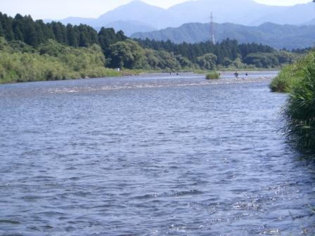 NABEさんからの情報もありOJ橋へ車を走らせた。今回はkobiさんも伊南に来るとの事で、場所をメールし橋下流のチャラ瀬とトロからなる場所で竿を出す事にした。アカが流されたのか石は綺麗でアカが付き始めていてツルツルで歩きづらい状態だった!トロからオトリを放したが追われる様子気配も無く、淳ちゃんも周りの釣師もム無言?我は、トロはダメと判断し50M下流へ移動、先程まで瀬で竿出していた師は下流へと移動していた?4M程の瀬ではあるが筋にコケが残っていた。そこを泳がせた途端!!!伊南の1尾を(^_^)掛かりではあるがGET!その後3尾釣る。瀬を探して150M移動OM橋下まで下ってしてしまった、朝は4,5人が竿を出していたと思ったが人っ子一人見かけす?橋下の瀬で竿を入れた、白い岩盤の上から魚影が走った途端“ガッンと飛んだ”トロ場に寄せ引き抜く、20cmオーバーの幅広鮎GET!瀬釣りは楽しいのん(^_^)vガンガン瀬へ入れても竿先だけで泳ぐ005は違うなぁ~と思った途端悲劇が・・・“ガッガツ”と来たー・・ぷ。ぎゃは~切れたーダブル放流(-_-メ)