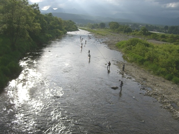 朝4時に淳ちゃんと山都を出、八幡橋に5時過ぎに到着!既に大勢の鮎師らが糸を出している。橋の上でNABEさんkobiさんに出会った!念願だった、あのサラリーマン&釣り師のkobiさんに逢うことが出来たのである。あまりお話しは出来ませんでしたが、感激でした!風邪が冷たく震える((+_+))